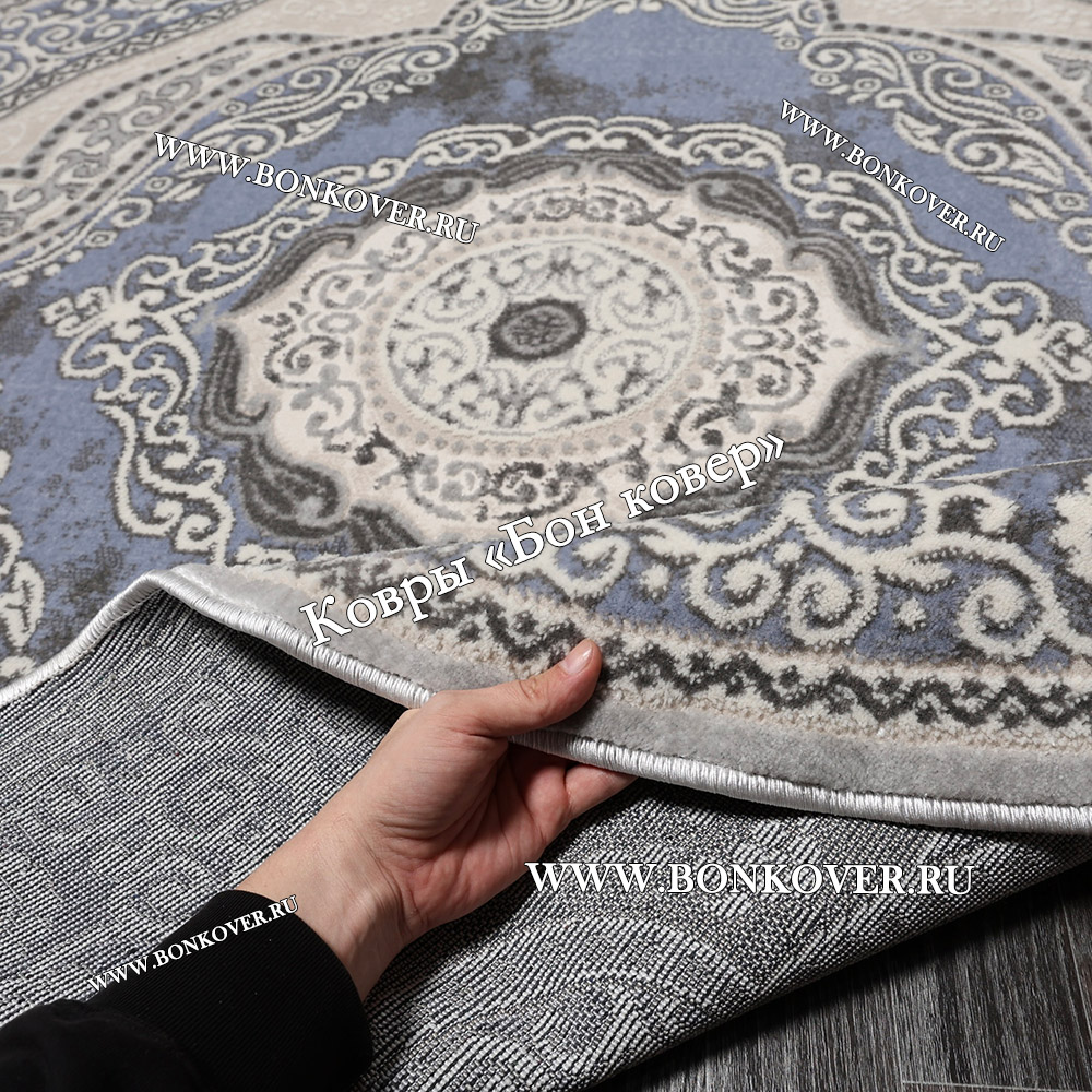 Изящный Круглый ковер в гостиную дизайн 01 Синий наполняет интерьер вашего дома теплом и уютом, гармонично сочетает в себе изящество и стиль. Он изготовлен из современных материалов, комфортный и долговечный.